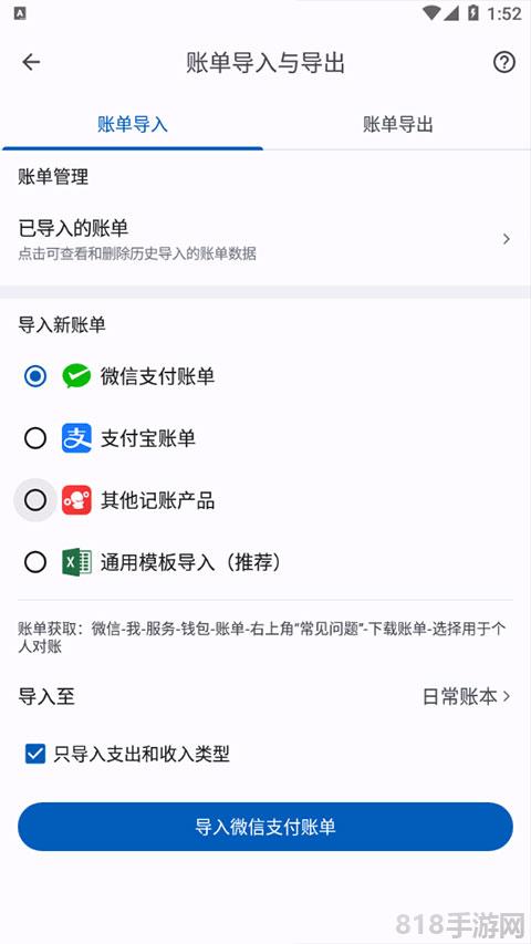 2、然后选择新账单进行导入,也可以导入本地的EXCEL账单。