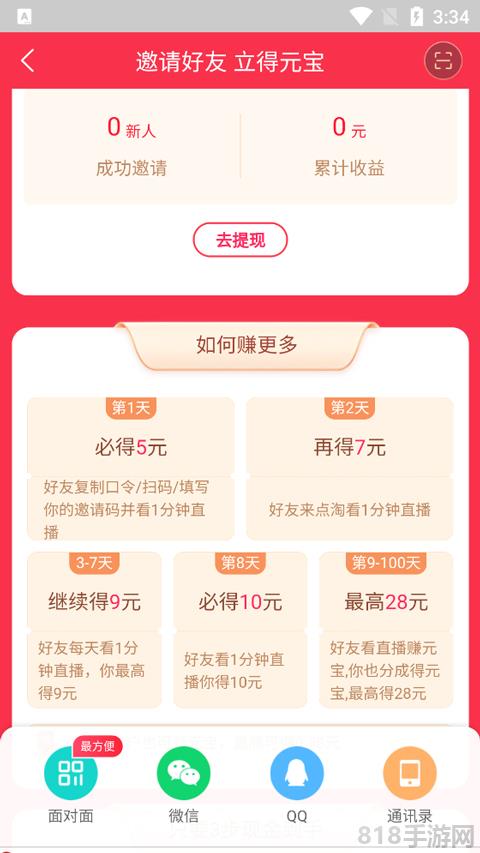 3、连续3-7天,每天观看直播1分钟以上,随机5-9元,第十天10元,第9-100天,每天观看直播,完成任务28元。