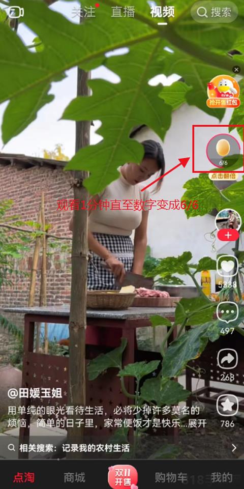 2、完成上述操作后,您可获得1-7元,然后第二天,打开点淘APP观看直播1分钟,如上图所示,必须获得7元!