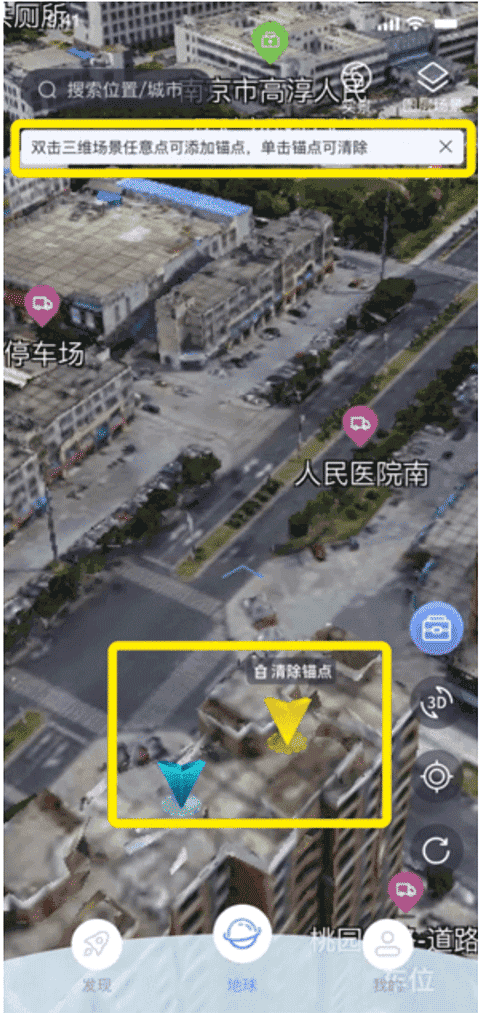 3、您也可以在实景场景中通过双击操作确定锚点,并通过单指划动屏幕实现更简便的操作;当您想要取消锚点时,仅需要在原锚点上再次点击就可以取消。